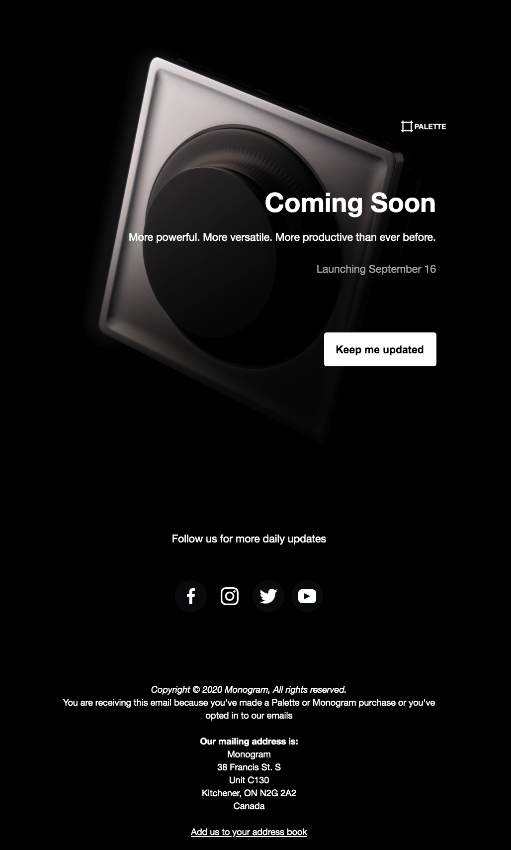 Several emails were created to generate interest and a landing page was created to collect emails from those that wanted to be among the first to know about our launch. I used existing assets to design the email and landing page in MailChimp and wrote copy that aligned with our key messages for the launch.